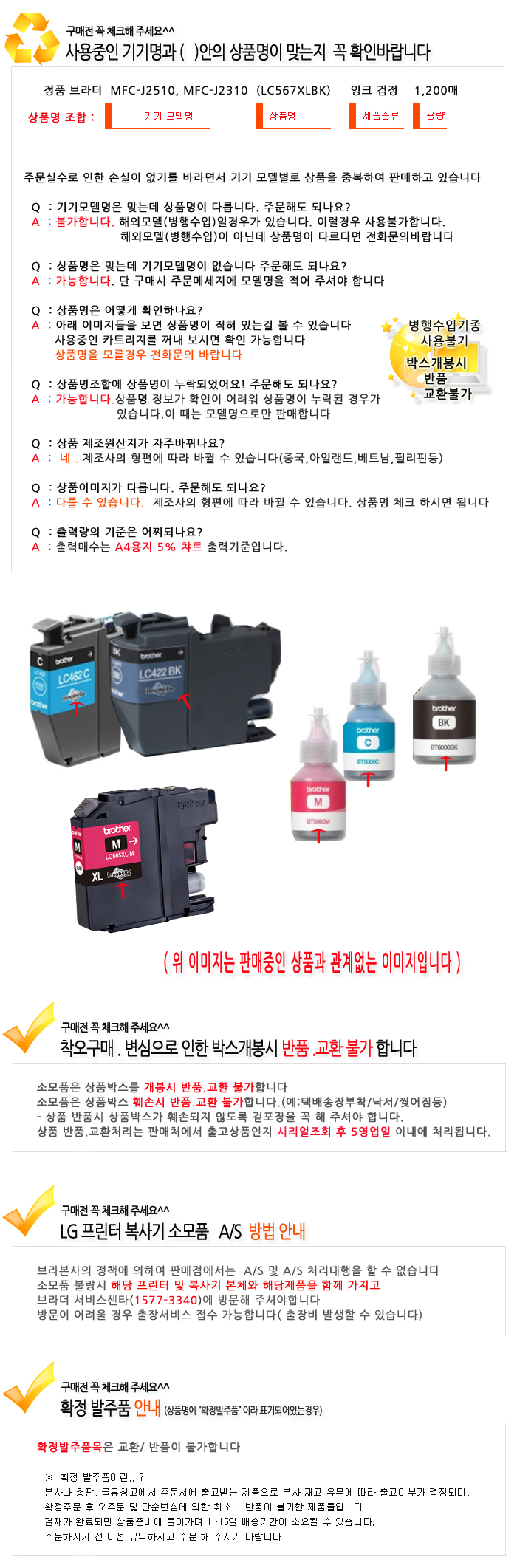 ±¸¸ÅÇϱâ --¿É¼Ç ¼±ÅÃ-- Á¤Ç° ºê¶ó´õ MFC-J2310, MFC-J2510 (LC565XLM) À×Å©»¡° 1,200¸Å ÃÑ »óǰ ±Ý¾× 0 ¿ø Àå¹Ù±¸´Ï ±¸¸ÅÇϱâ